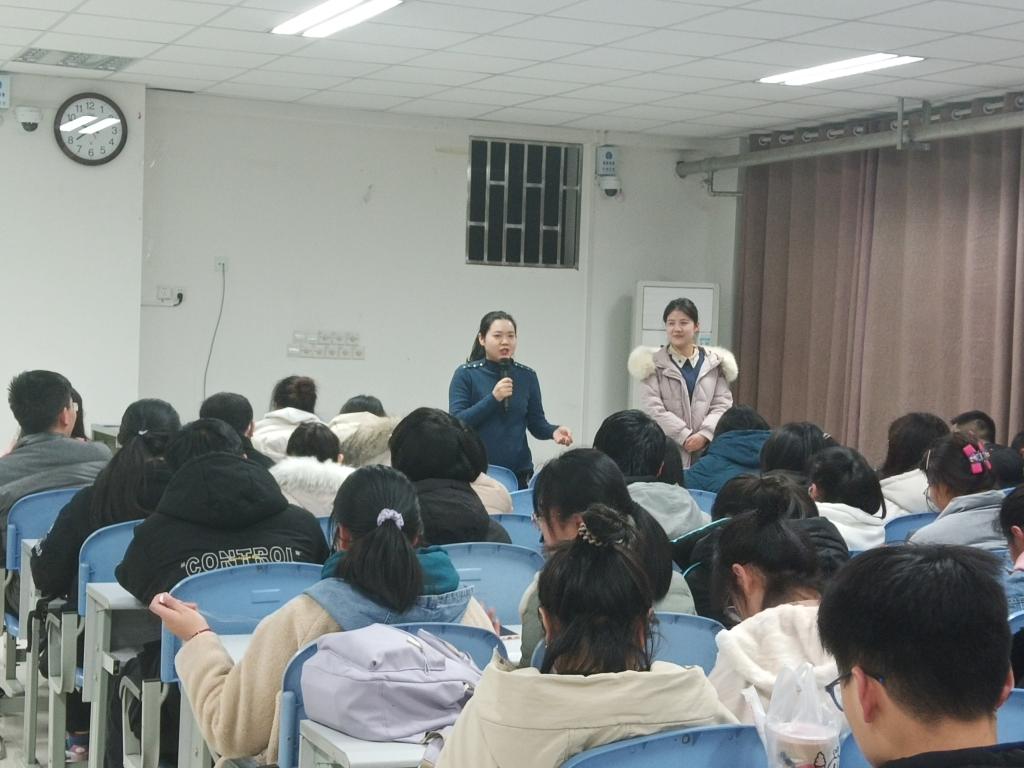 董洁老师结合《学生手册》讲解考试违纪处理条例,提醒同学们一些考试注意事项。同时也强调了诚信考试的重要性,号召同学们积极认真备考、诚信考试、端正考试态度、通过自身努力取得良好成绩。会议最后,班主任也再次强调挂科补考的恶劣影响,提醒同学们不要大意,合理安排复习,要认真地备考。