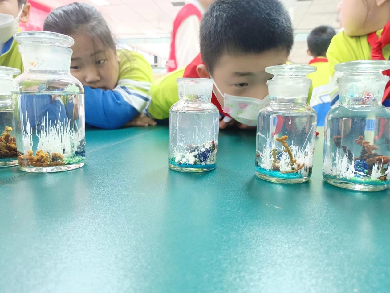 小学生们被分为六组,轮流做6个化学科普小实验:水中花园、大象牙膏、点水成冰、写密信、跳动的葡萄干和紫色玻璃罩。基础实验中心董青松、李杰、田淑芳三位老师先进行讲解示范,小朋友们被奇妙的实验现象深深吸引。他们认真观察,积极与老师互动,细心缓慢地进行实验操作,惊讶于化学实验的神奇。老师们也惊喜于小朋友们对化学实验的探索与喜爱,耐心解答他们的疑问,认真指导他们的操作。在本次科普活动中,小朋友们从有趣的化学实验中学习到了氧化还原、酸碱中和等化学知识。实验结束,大家进行合影留念,每个小朋友都收到了体球网即时比分足球比分