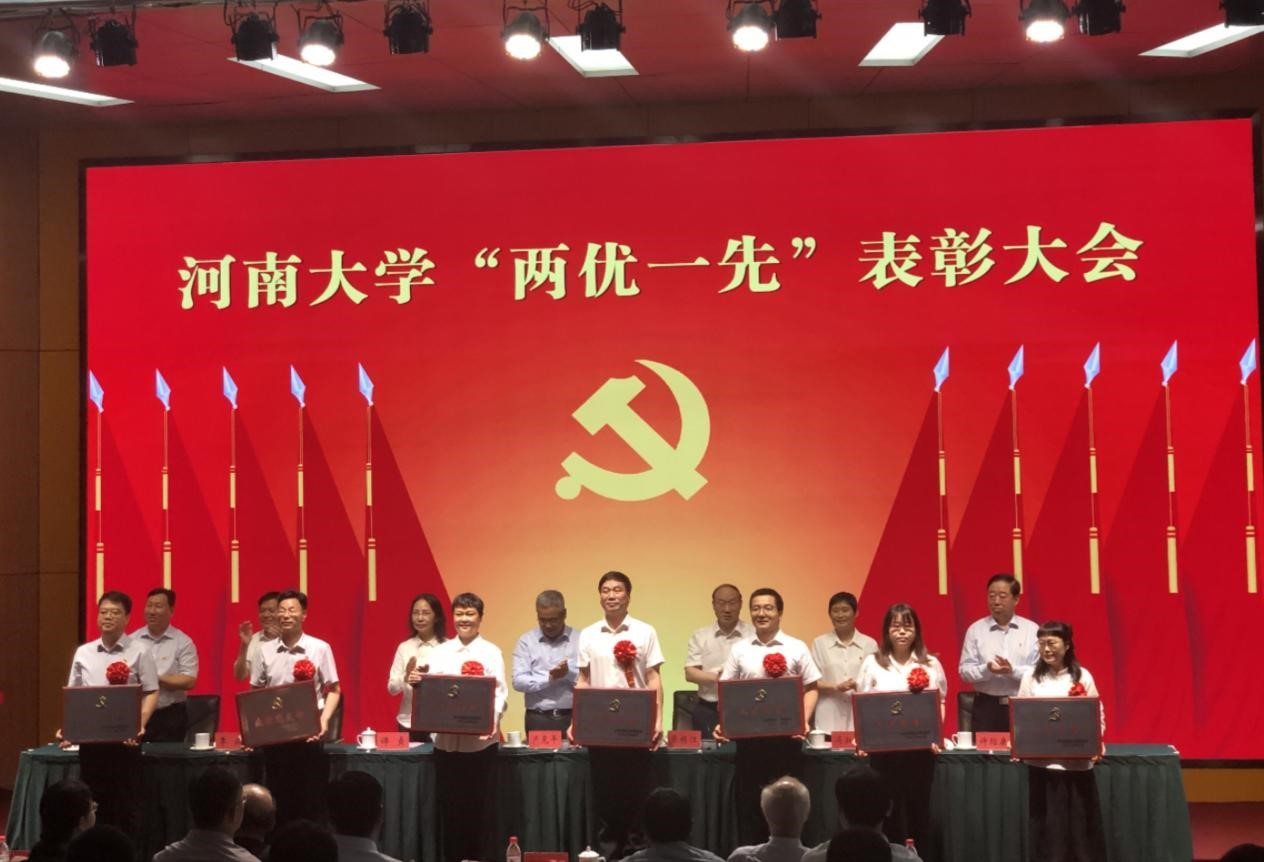 党委荣获“河南大学先进基层党委”荣誉称号,行政党支部和纳米材料工程研究中心教工党支部荣获“河南大学先进党支部”荣誉称号,陈欣、郭泉辉、聂亚敏、刘建彩、曹凤芝(退休党员)、候永康(学生党员)、张丽娜(学生党员)等7位同志荣获“河南大学优秀共产党员”荣誉称号,杨丽同志荣获“河南大学优秀党务工作者”荣誉称号。