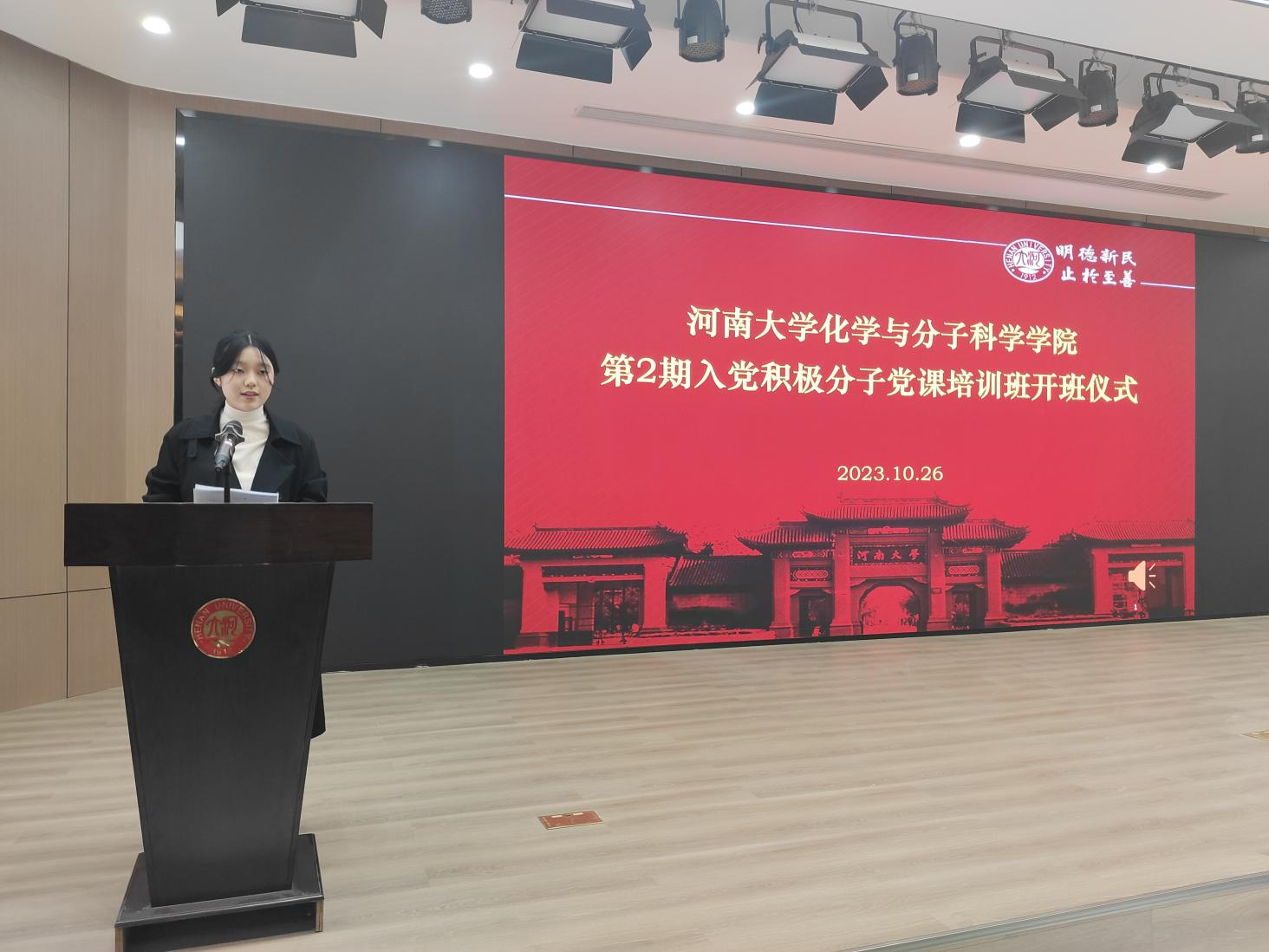 2022级本科生叶凌含作为学员代表发言。她代表全体学员表态,一要认真踏实学习,积极参与研讨;二要严格遵守纪律,服从组织管理;三要端正入党动机,坚定理想信念。