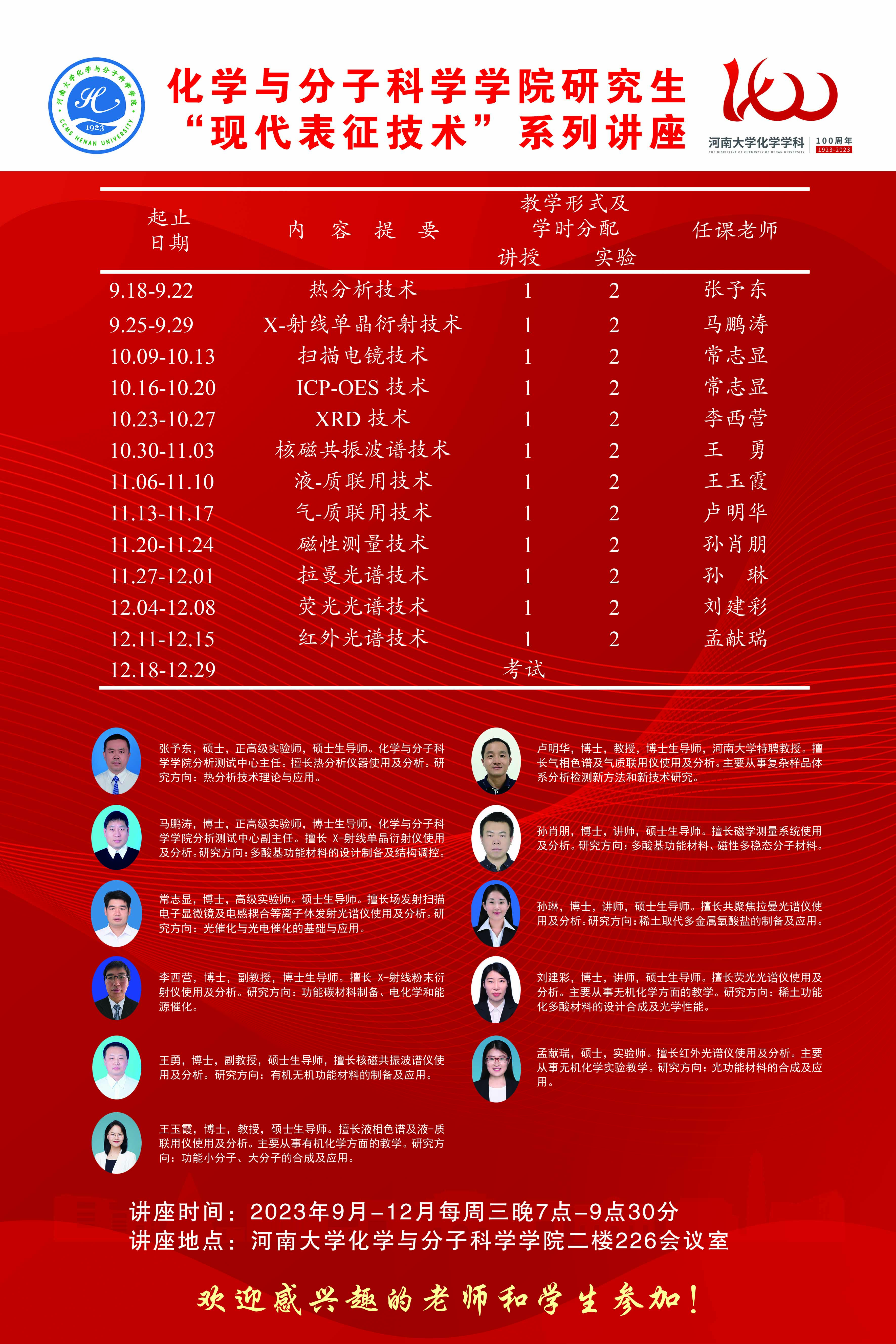 分析测试中心在2023年下半年联合实验室与设备管理处的大型仪器共享平台,面向全校研究生举办了一次“现代表征技术”系列讲座。