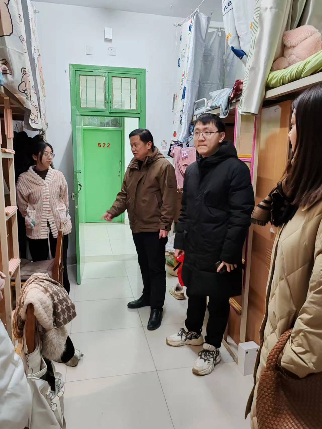 党委副书记马文海带领全体学生辅导员,到学生宿舍看望留校学生,对学生进行安全教育并排查安全隐患。针对发现部分学生宿舍私拉电线、充电后忘记关闭电源、宿舍物品堆放杂乱等问题,当场要求学生整改。提醒留校学生注意宿舍用电安全,注意冬季防火,保持宿舍卫生,叮嘱学生注意宿舍防盗防骗,同时注意饮食安全,规律作息,与老师和家长保持联系等。