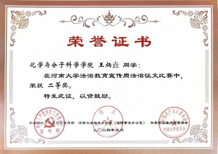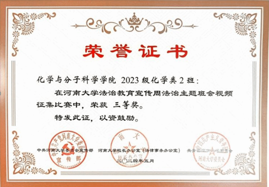 2023级化学类一班、化学类二班分别荣获法治主题班会视频征集比赛一等奖和三等奖、2022级王炳垚同学荣获法治征文比赛二等奖,体球网即时比分足球比分