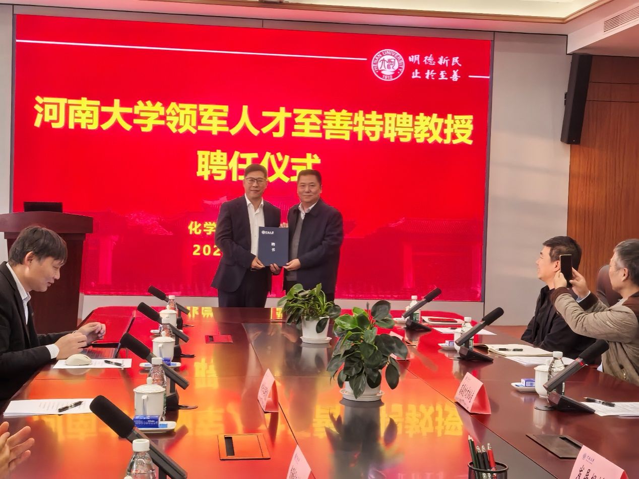 仪式上,张礼刚为赵伟颁发了河南大学领军人才至善特聘教授聘书。