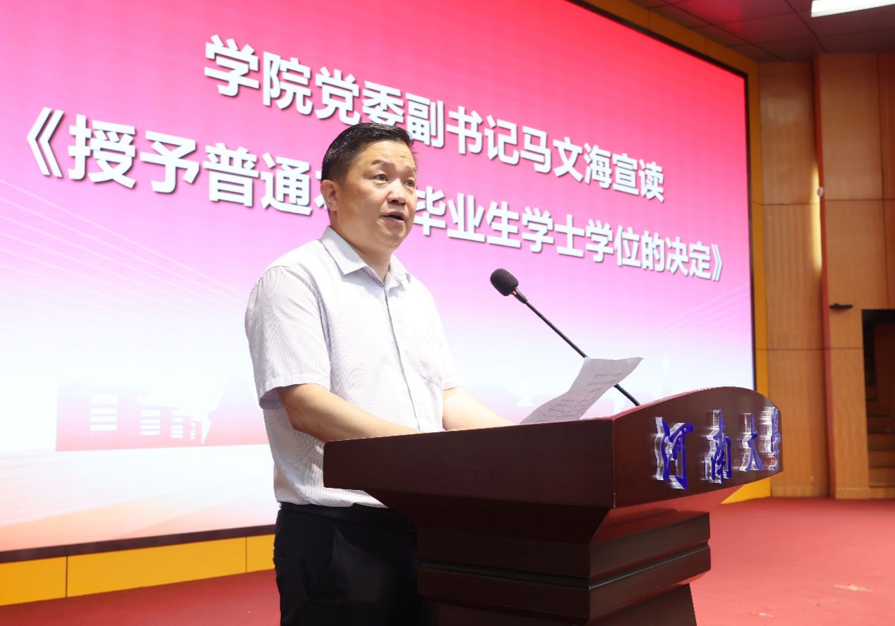 党委副书记马文海宣读《授予普通本科毕业生学士学位的决定》。在欢快的乐曲中,毕业生们相继上台,体球网即时比分足球比分