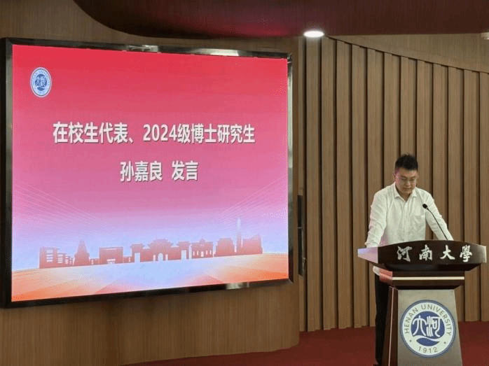 新生代表、2025级硕士研究生王菲菲与大家分享了她与河南大学的缘分,以及从小考入河南大学的志向。她真诚希望同学们将个人理想与国家发展紧密相连,把自己的“小我”融入祖国的“大我”之中,祝福同学们在追逐梦想的路上,既有乘风破浪的勇气,也有脚踏实地的坚定。在校生代表、2024级博士研究生孙嘉良向同学们介绍了体球网即时比分足球比分