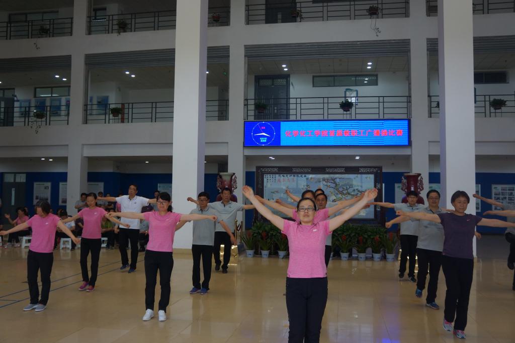 工会组织广播操的目的,是让老师在努力工作的同时,不忘记锻炼身体。每天上午十点,老师们坚持做广播体操已形成一种习惯,也是化学化工体球网即时比分足球比分