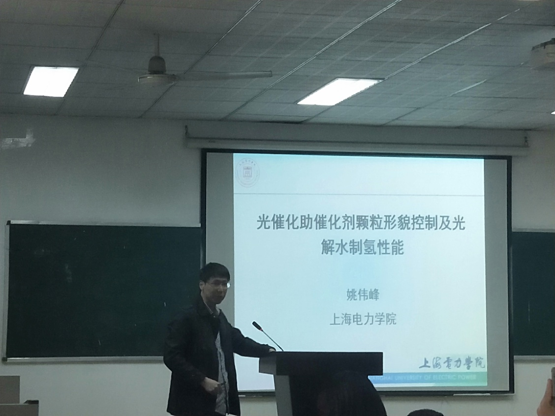 姚伟峰特聘教授在化工院226会议室做了一场“光催化助催化剂颗粒形貌控制及光解水制氢性能”的学术报告。老师和研究生聆听了此次报告。