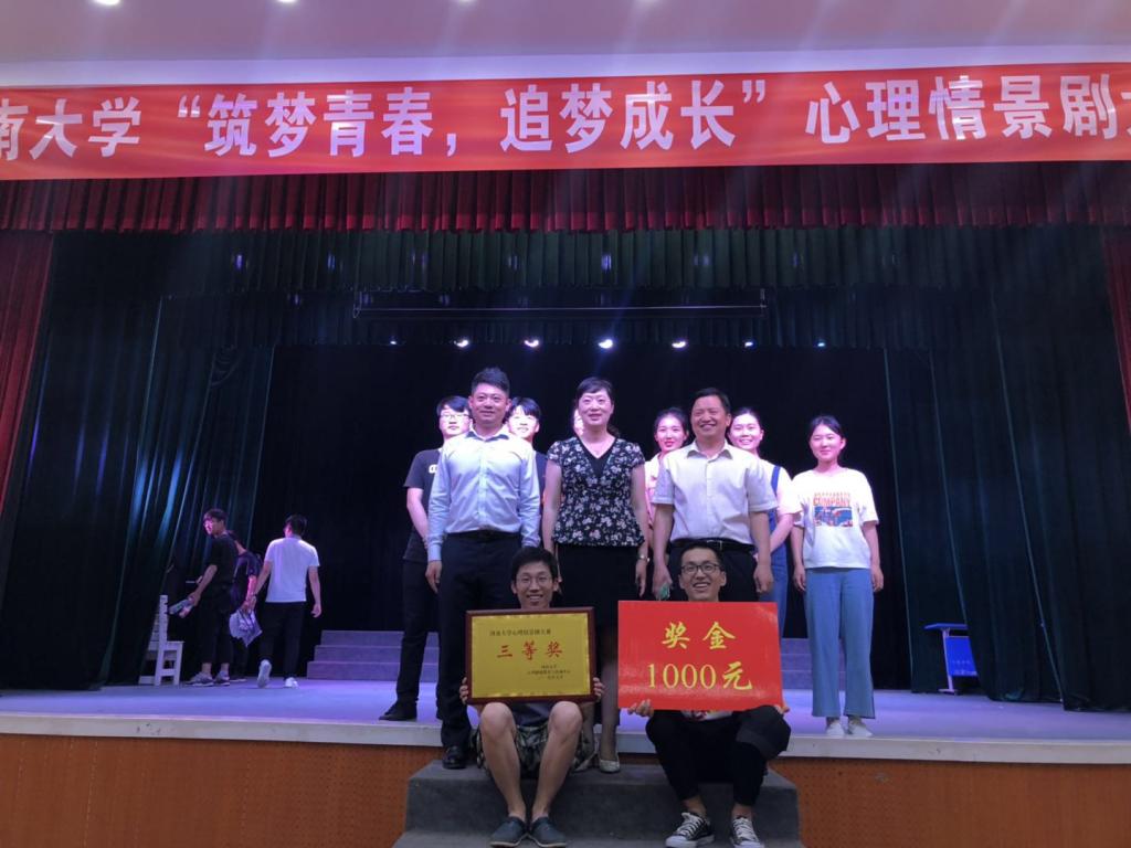 为进一步推进我校心理健康教育工作,营造阳光、健康的校园文化氛围,丰富校园生活,充分发挥大学生的自我教育功能。2019年5月26日,由河南大学党委学生工作部、心理健康教育与咨询中心主办的以“筑梦青春,追梦成长”为主题的心理情景剧大赛决赛在明伦校区音乐体球网即时比分足球比分