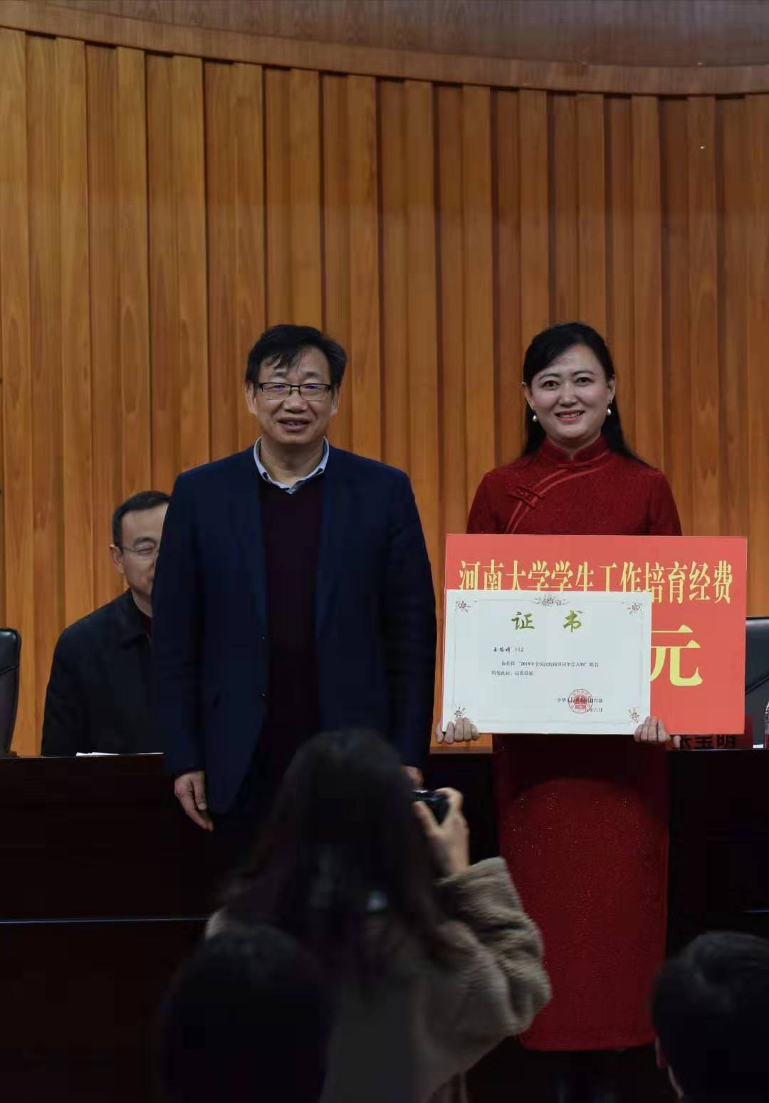 颁发学校学生工作项目培育经费,以资鼓励。接下来分别对其他优秀个人进行颁奖。