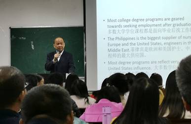 Rio还做了题为“Philippines and China education and cultural heritage”的报告。报告会由院长助理许英主持。报告主要介绍了菲律宾的教育、管理、文化与中西方教育文化的交融、传承与差异以及在学科教学研究方面的最新思想与研究进展。Rio教授的报告旁征博引、幽默生动,得到了体球网即时比分足球比分