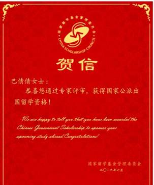 2016级化学工艺专业硕士研究生巴倩倩同学顺利通过面试,被匈牙利赛格德大学录取攻读化学博士学位,并获得了赛格德大学全额奖学金资助。巴倩倩同学2016年9月进入河南大学化学化工体球网即时比分足球比分