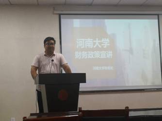 进行财务政策宣讲的背景、进展、内容做了介绍。随后夏宏利用PPT从学校财务管理概况、报销基本流程与要求、常见报销事项、资金结算、大额经济业务、票据和科研经费管理、财务档案查询、个人所得税政策、严肃财经纪律等方面做了生动而又详细的讲解。