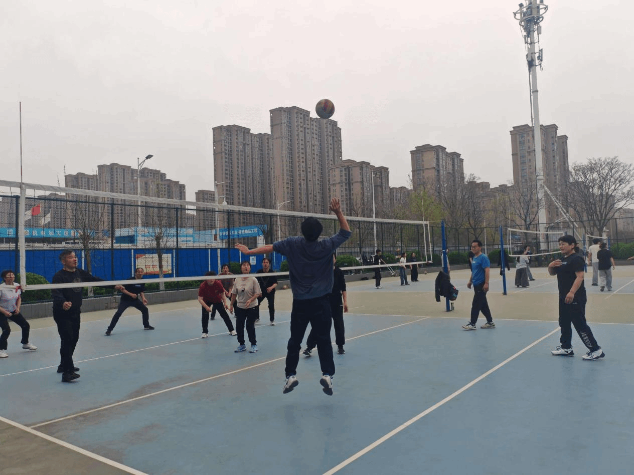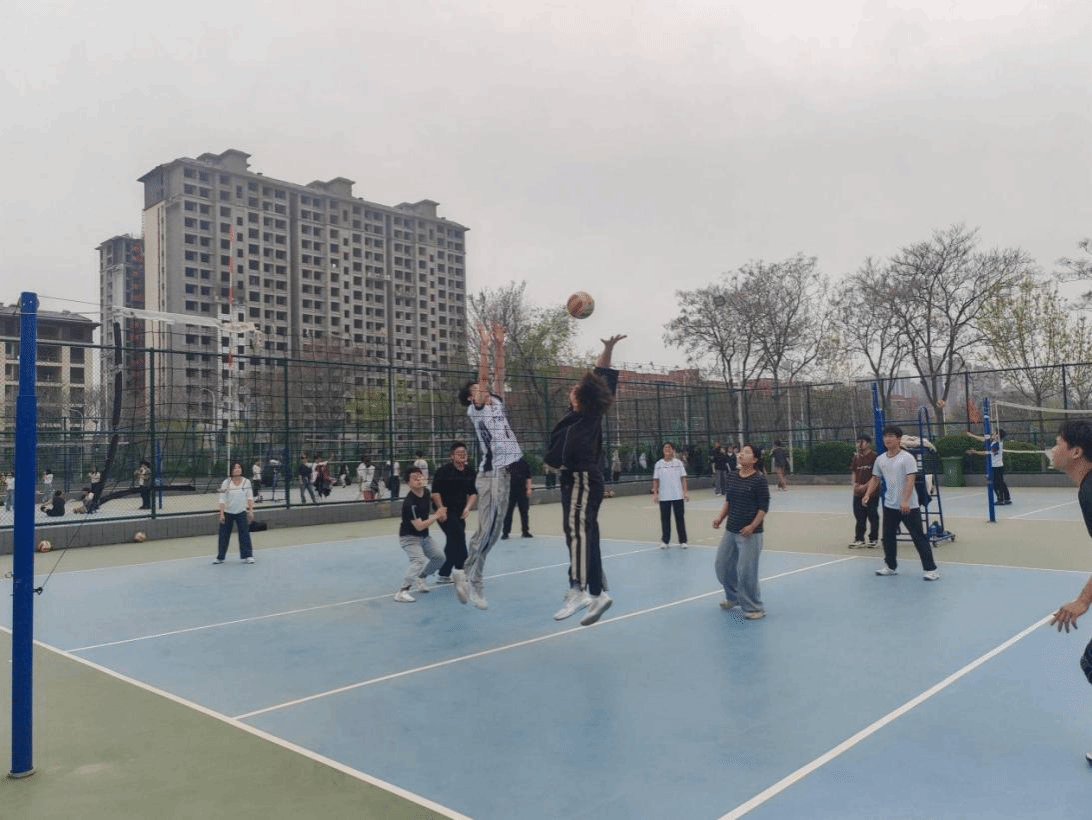 活动现场氛围热烈,参赛师生精神饱满、热情高涨。大家以球会友,在轻松愉悦的氛围中交流互动,充分感受排球运动的独特魅力。热身准备环节,师生们相互配合、积极热身,为接下来的交流比赛做好充分准备。