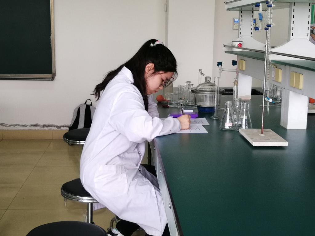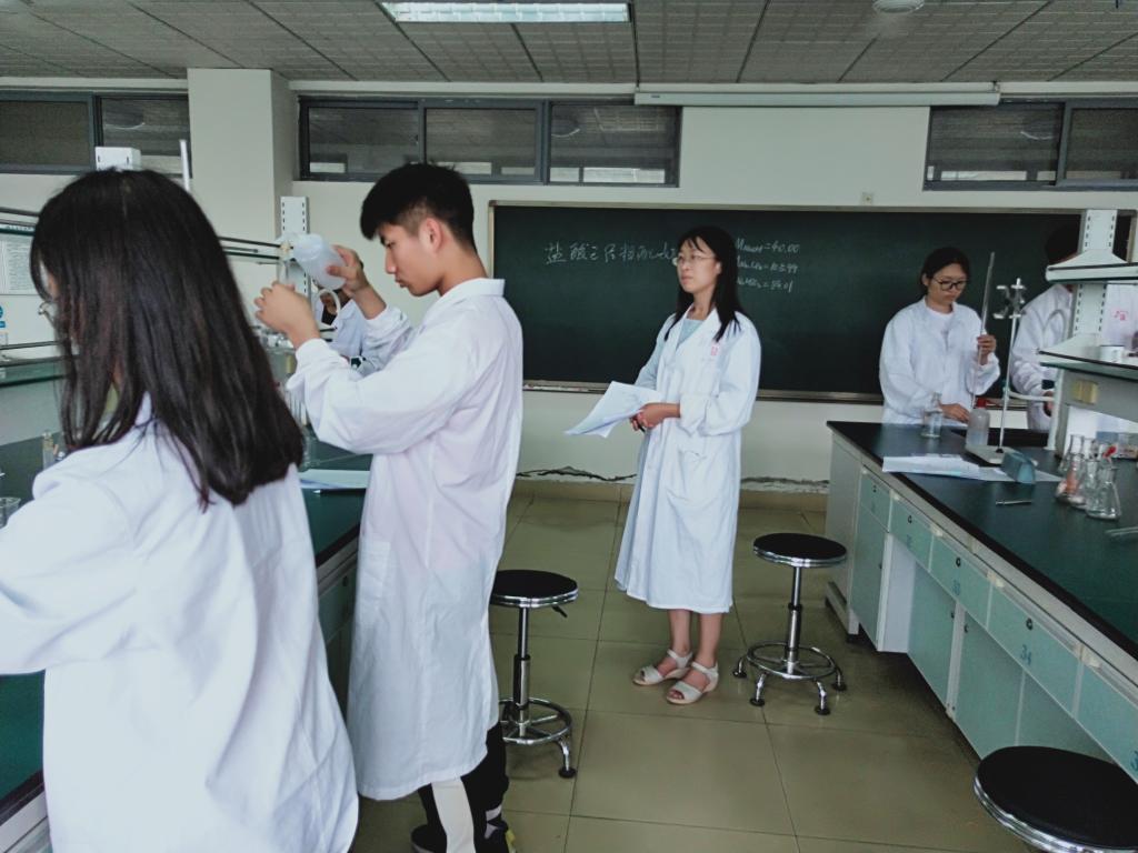 比赛开始前,同学们纷纷认真检查仪器,为比赛做充足的准备。竞赛过程中,同学们镇静自若,动作迅速,力求发挥出自己的最好水平。从实验步骤设计、计算、称量、滴定、到实验数据处理,他们一丝不苟地完成实验各个环节。最后,评委本着公开、公平、公正的原则,从化学基础知识、计算能力、实验操作等几方面给同学们进行评分。