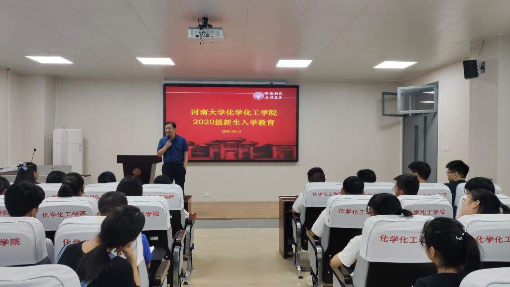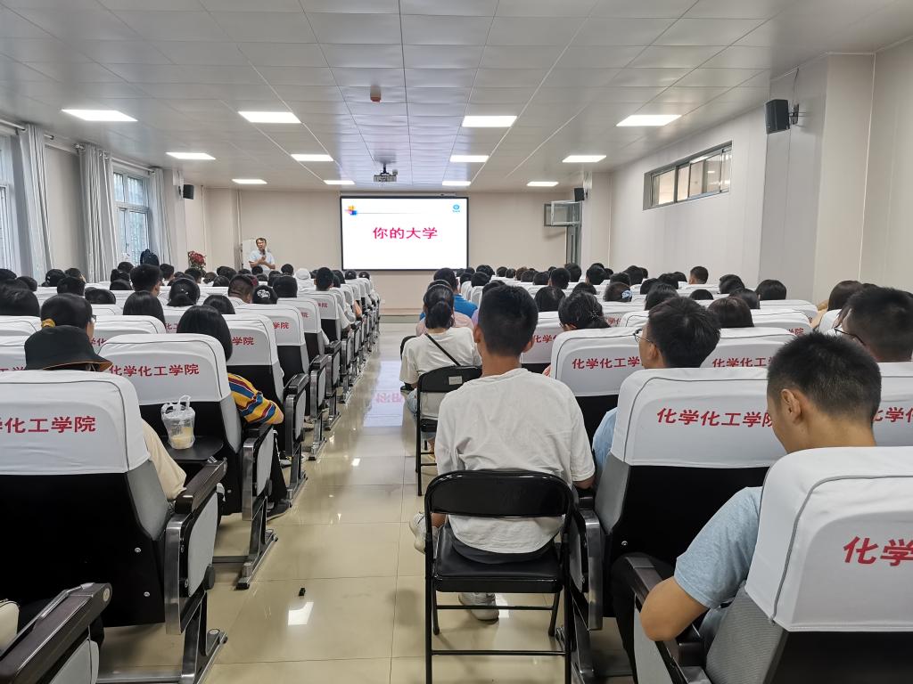 整体学科的发展动态,同时他向化学类新生介绍了化学和应用化学在专业课设置上的区别,研究方向的差异,就业选择的不同,为同学们对接下来选择化学还是应用化学提供了帮助。郭全辉向化工班新生详细介绍了化学工程与工艺专业特点、专业发展现状、专业学习方法以及未来职业前景等,为新生树立专业学习信心。