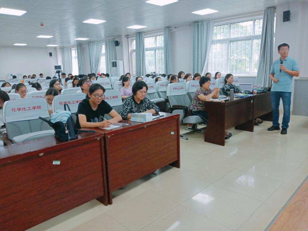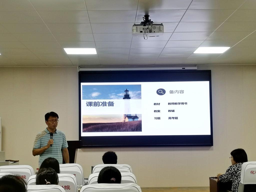 本次讲座的主题为“如何开始上一节课”,王磊从课前准备、课堂进行时以及课后总结三方面与同学们进行了分享交流。“工欲善其事,必先利其器”,充分的课前准备是上好一节课的前提,王磊详细讲解了教师的课前准备工作:准备内容,教师对讲授的知识要有全面的把握,需准备教材、教案、习题等;准备框架,教师应明确教学提纲,抓准重难点,对于框架的构建,他建议可以采用先填满、再倒空、保留骨架和关键词的方法;对于化学这门课程,教师还需要准备实验,其中包括实验目的、仪器、药品和试剂。王磊给同学们展示了几种常用的教辅材料,并分别介绍了它们的特点,引起与会同学们的共鸣。