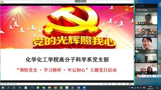 党委的要求,高分子科学系党支部于7月7日采取线上活动的方式,深入开展了“领悟党史 – 学习榜样 – 牢记初心”主题党日活动,体球网即时比分足球比分