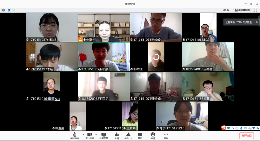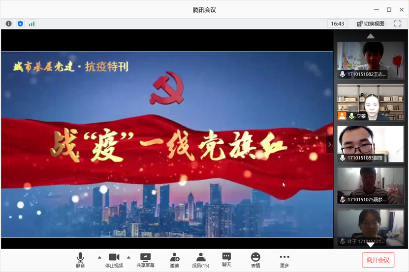 本科生化学工程与工艺党支部利用腾讯视频开展了以“牢记初心使命、争当出彩先锋”为主题的党日活动。活动由党支部书记宁攀主持,支部全体成员参加。