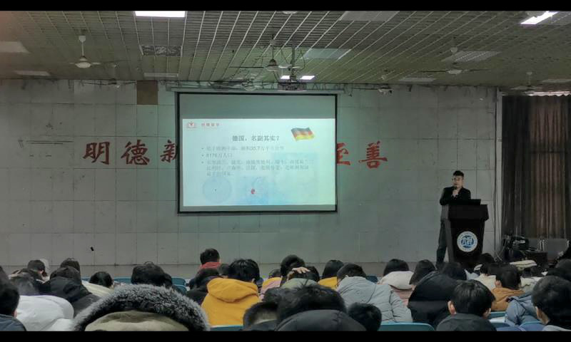 创德教育负责人秦老师侧重介绍了留学德国所需要的条件和手续,以及留学德国的益处,为有意愿出国留学的同学提出宝贵的建议,鼓励这些同学提前做好准备,储备好出国留学所需的各方面知识,以及提高必备的外语交际能力。整个讲座过程气氛活跃,讲座之后老师和同学们进行互动,老师对同学们提出的疑问进行了一一解答。