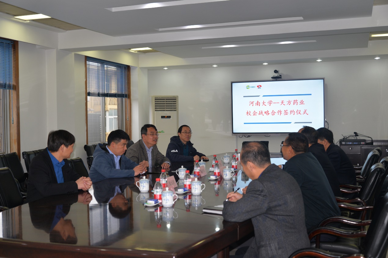 毛全贵代表公司致辞。他首先对母校老师们的到来表示欢迎,并在深情回顾了在院学习的经历后,详细介绍了天方药业的发展历程。他指出,虽然公司目前保持了良好的发展势头,但在人才、技术和创新能力等方面仍需要河南大学提供更多的帮助,希望双方能够加强合作,共同发展。