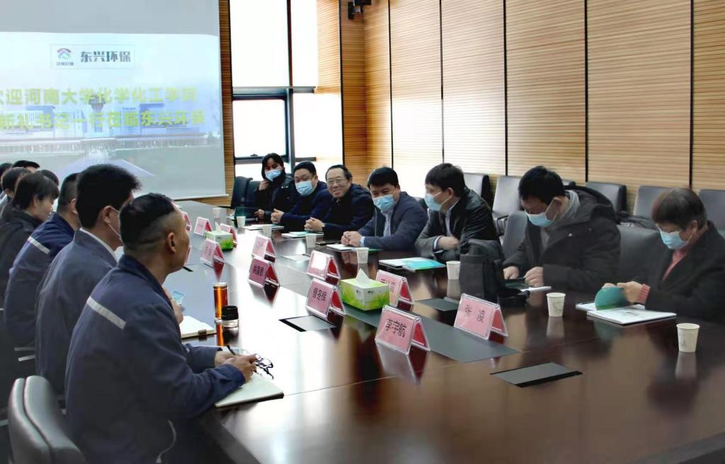党委书记翟新礼、副院长徐元清、院长助理许英等一行8人赴郑州东兴环保能源有限公司进行交流,与公司副总经理王斐及职能部门负责人就开展产学研合作进行了探讨。