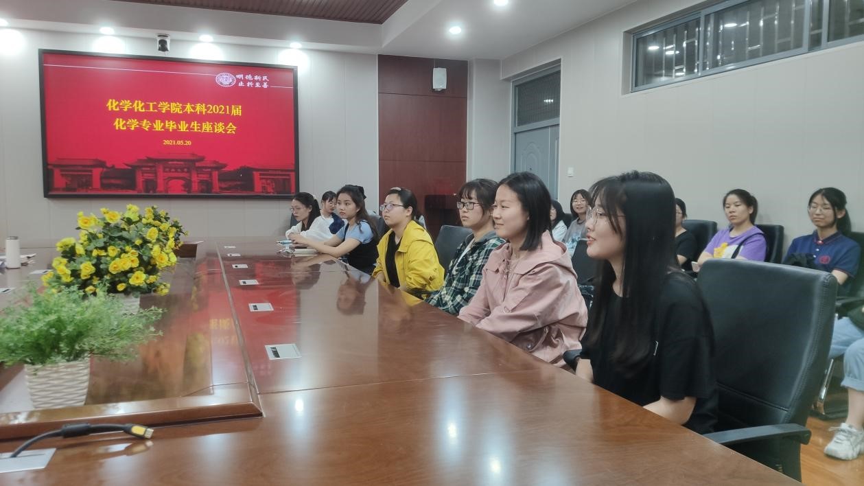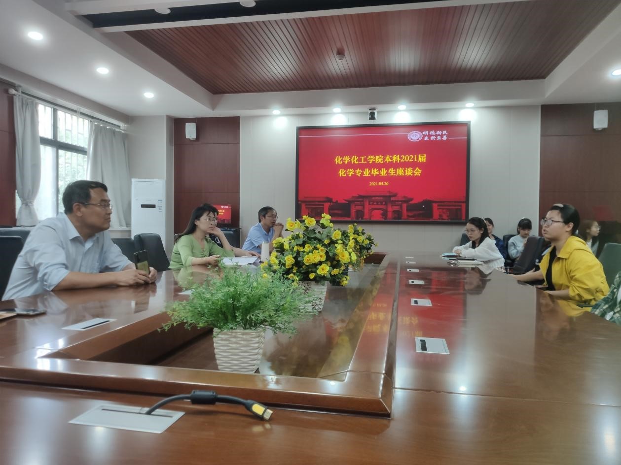 召开2021届化学专业毕业生座谈会,副院长刘学军、化学系书记冯彩霞、主任李亚敏、副主任常海波、徐浩、王冠,以及部分化学专业毕业生参加了本次会议。