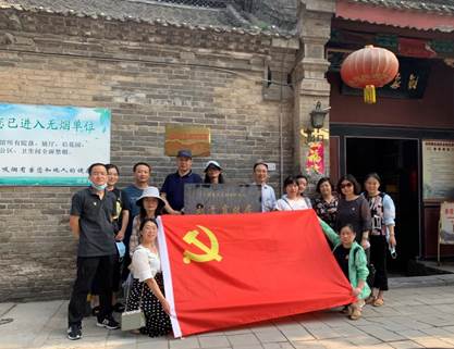 全体人员首先参观了刘少奇在开封陈列馆。陈列馆坐西朝东,展厅内陈展了150余幅珍贵历史图片和大量文物。从一张张珍贵的历史照片,一件件历史文物,一个个感人至深的故事中,大家重温了刘少奇同志为共产主义事业奋斗终生的革命历程。本次活动使全体党员同志们接受了一次爱国主义教育的洗礼,深切缅怀革命先烈,牢记初心使命,继承和弘扬党的优良传统和作风。在鲜红的党旗下,全体人员在支部书记冯彩霞的带领下,举起右拳,重温入党誓词。