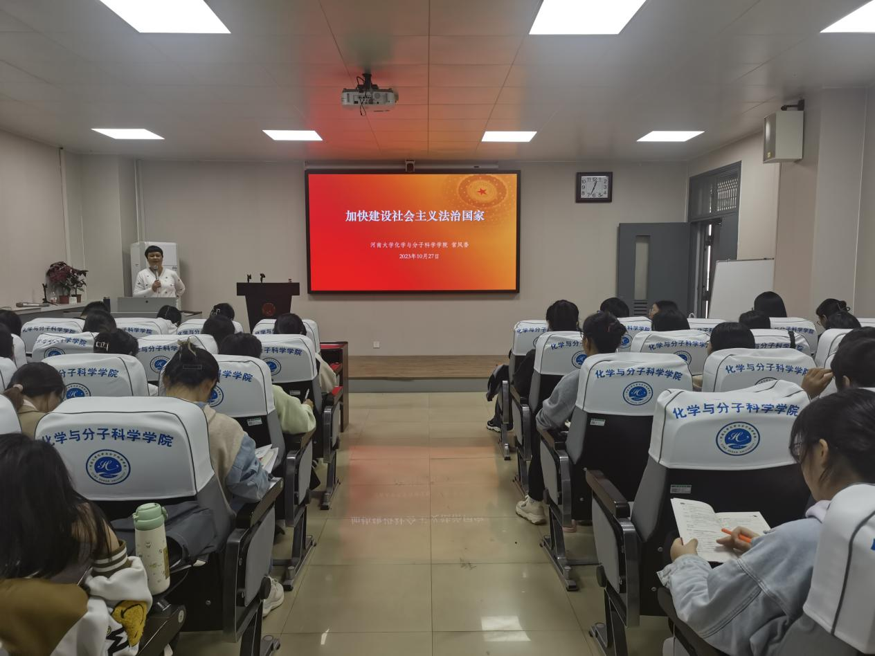 常凤香首先以全面依法治国为切入点,向同学们介绍了全面依法治国的总目标及其关键性,继而对法律和其发展历程展开具体描述。接着,她分别讲述了“坚定不移地走中国特色社会主义法治道路”、“加快建设中国特色社会主义法治体系”、“深化依法治国实践”和“加强党对全面依法治国的领导”的必要性和正确性,通过替考、高空抛物、无人机“黑飞”、“指鼠为鸭”等现实问题,向同学们介绍了成文法的修正、修订和司法解释。最后,她强调了民法的基本准则和法律责任类型,并表示,希望全体入党积极分子要严于律己,坚决不触碰法律的红线。