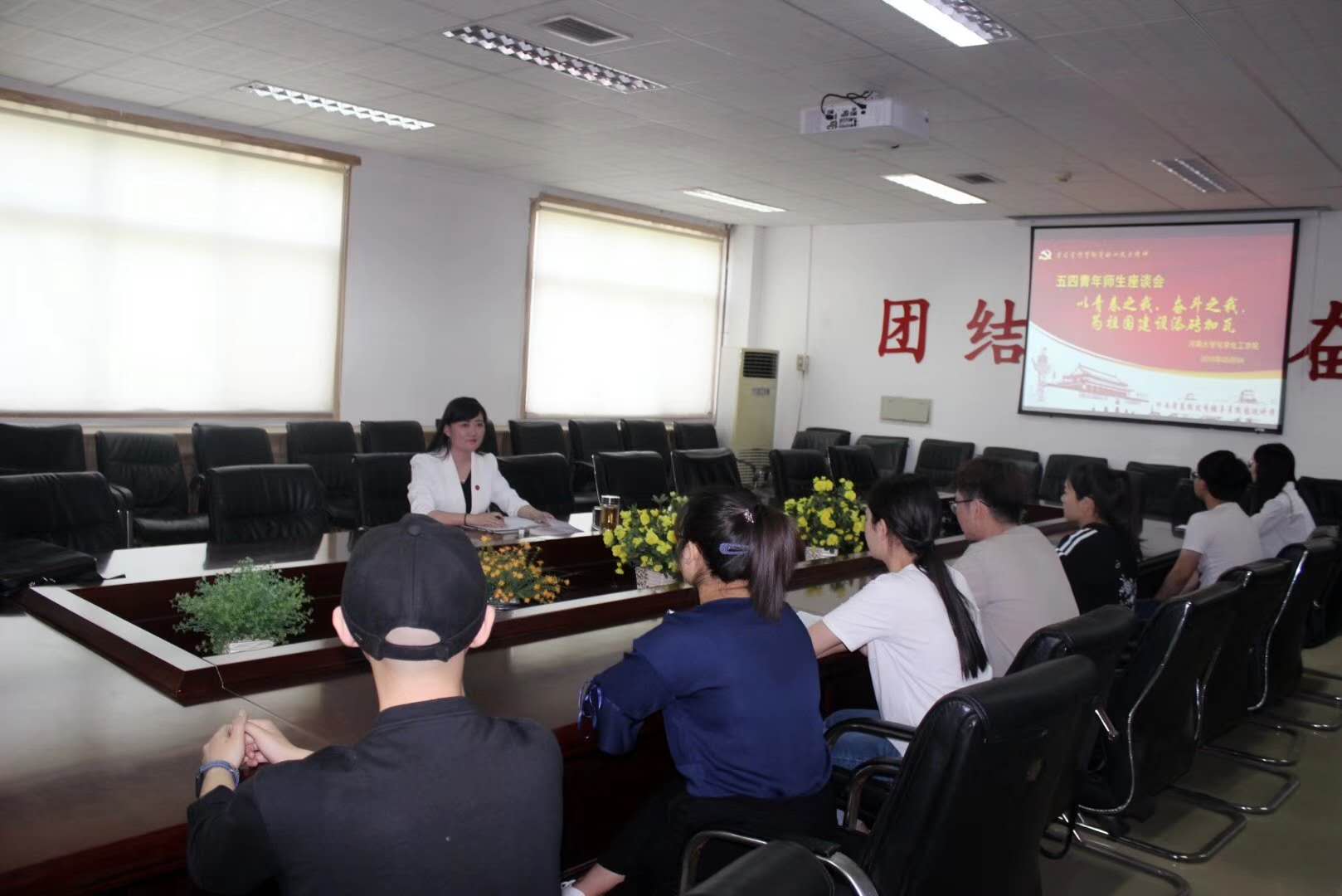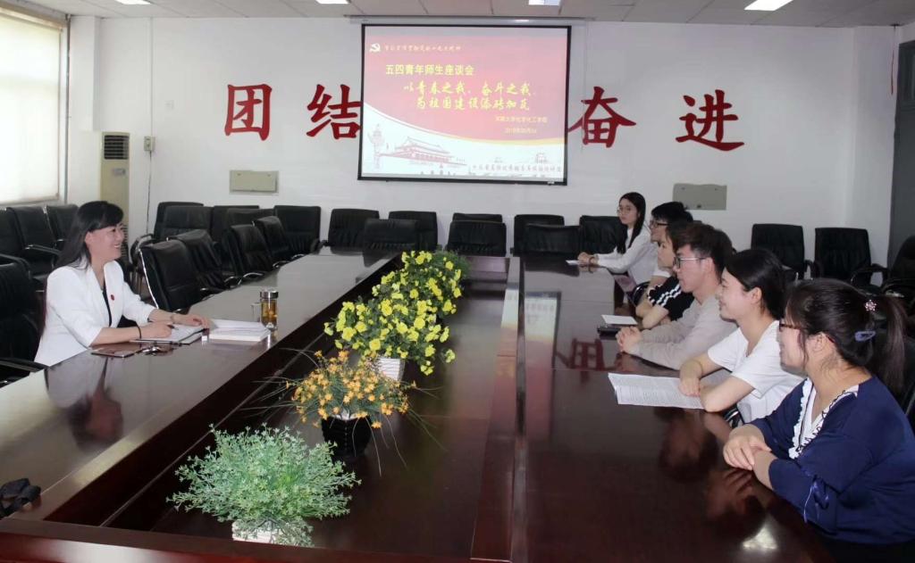 220会议室,本科生第一党支部召开了“以青春之我、奋斗之我,为祖国建设添砖加瓦”为主题的五四青年师生座谈会。支部书记王路娟与毕业生党员们亲切交流,她引导全体毕业生党员同志们传承“铁塔牌”学子的优良传统和学风,在新的学业和新的工作岗位上继续发挥党员模范和带头作用。