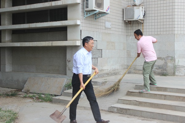 办公楼周围环境赫然一新,干净整洁。教师党员徐元清感叹,好长时间没有参加这样的集体劳动了,今天重新拿起扫帚,铁锨,看到经过自己辛苦打扫,如此整洁的环境,感到心情特别的舒畅。