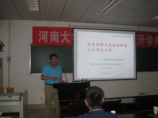 师生授课,此次报告会题目为“能量转换与存储材料的几点心得”,报告会由院长牛景杨主持。