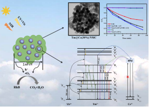 能源短缺和环境污染是当今社会面临的两个主要问题,用光催化法降解有机污染物被认为是同时解决上述两个问题行之有效的方法之一。光催化剂的研究工作一直是广大科研工作者关注的焦点,其核心问题是如何提高光催化的活性。金属有机框架(MOFs)化合物和半导体是最常见的光催化剂,但是它们的吸光范围一般都在紫外区或者有限的可见光区域。为了充分利用太阳光,特别是占整个太阳光谱50%的近红外光,开发上转换纳米颗粒(UCNPs)与MOFs或半导体相结合的光催化剂已经势在必行。针对以上问题,王丽教授和张敬来教授课题组设计合成了一种新型复合光催化剂NaYF4:Yb,Tm@NaYF4:Yb,Ce/NH2-MIL-101 (Cr) (Tm@Ce/NMC),成功控制了核壳结构的尺寸并促进了核壳之间的能量传递。掺杂Ce离子的核壳异质结构不仅有利于提高荧光发射强度,还利于电子-空穴的分离。该光催化剂分别在模拟太阳光、UV+Vis和NIR下对罗丹明(RhB)进行降解,都显示出优异的光催化降解效果。此复合光催化剂的成功研制为设计核壳之间具有有效能量转移的新型光催化剂提供了新的思路。