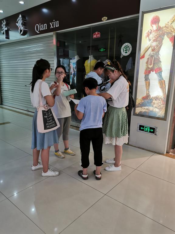 活动开展主要分为两环节。首先,队员兵分三路,依次前往开封市的鼓楼、星光、万达等人流量大、垃圾产量高的商业街,向大众宣传垃圾分类相关知识、发放问卷调查。为确保宣传的广泛性,各个年龄层次的人皆有涉及,同时,为避免性别差异对实验数据及结果的影响,成员们合理分配填写调查问卷的男、女比例,力求数据的可靠性。