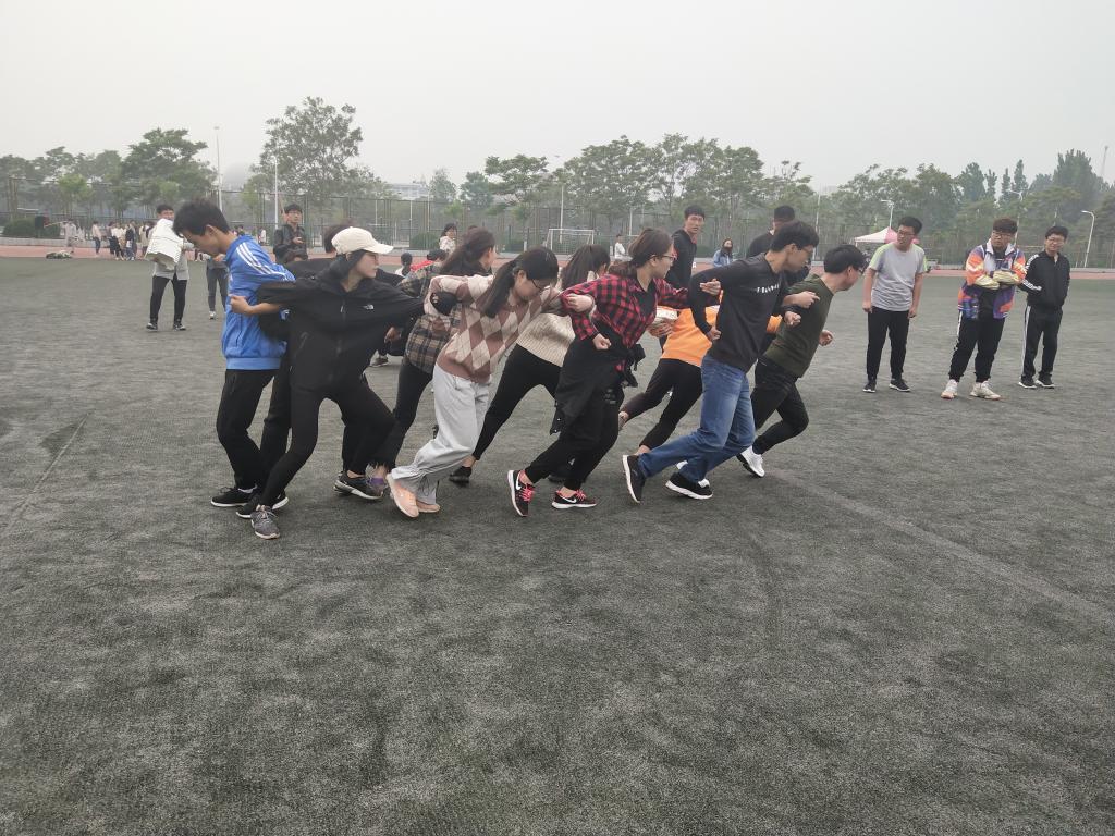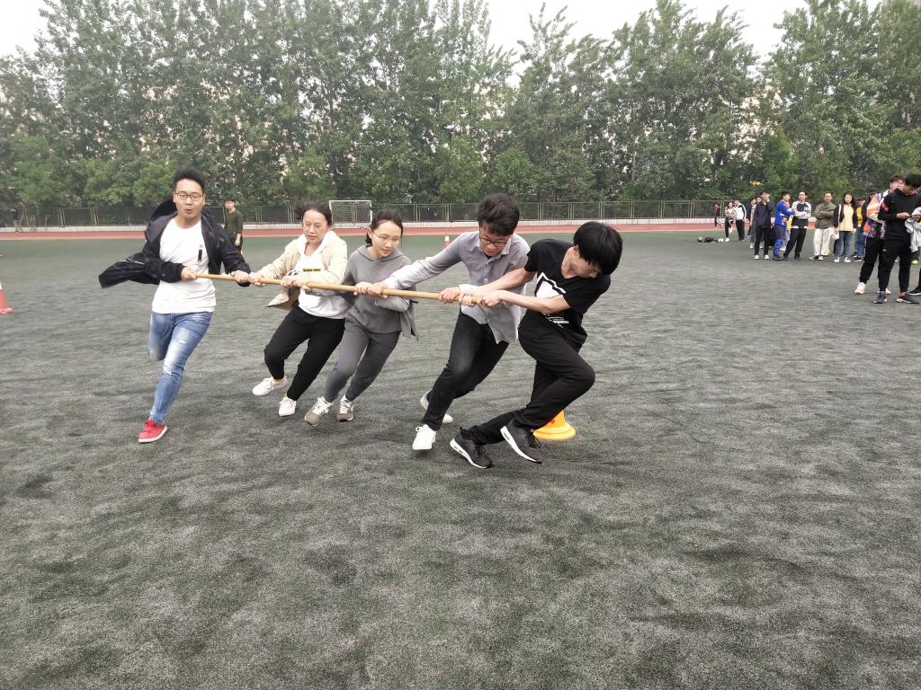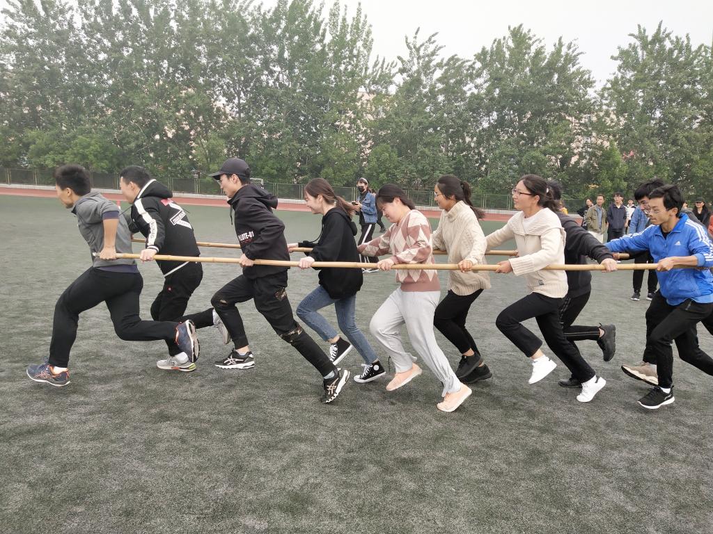 在东操场举行集体项目友谊赛。此次比赛项目有袋鼠跳,勇过浮桥,巧划旱船,带球绕杆,棍推乾坤等春运会集体项目。