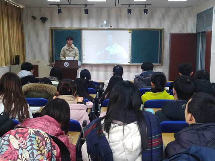 首先,团委副书记王钰宣读共青团河南省委、河南省青年联合会、河南省学生联合会、河南省少工委联合下发的《关于组织全省各级团组织和广大团学干部、少先队工作者、团员青年向张玉滚同志学习的通知》,向到场成员讲述张玉滚同志先进事迹。被中宣部授予“时代楷模”荣誉称号的张玉滚,是河南省南阳市镇平县高丘镇黑虎庙小学的校长,黑虎庙小学深处大山,环境异常艰苦,但他顽强坚守,无私奉献,将17年青春时光投入到山村教育中。