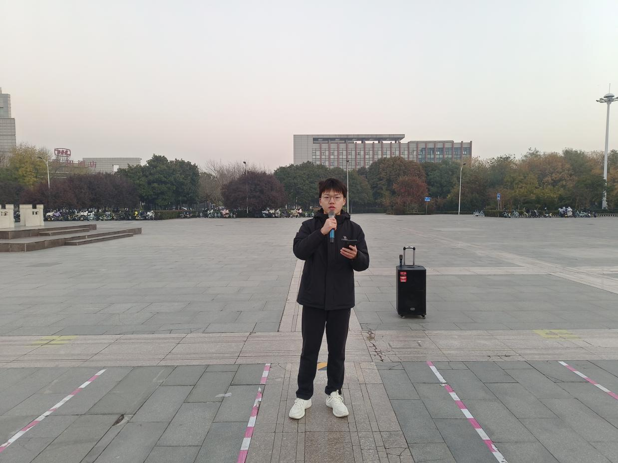 随后,2021级本科生贾凡作为学生代表进行了主题为“胸怀爱国主义情,勇担民族复兴任”的发言。他谈到,河南大学始终饱含对国家的热爱,用实际行动承担着爱国担当,即使在战争中,也坚持敌前办学,始终秉持教育报国的理念,艰苦奋斗,锐意进取。他呼吁,我们化院学子要以昂扬的面貌,与无数中国青年同行,依靠自己的奋斗来推动中国社会发展,中华民族伟大复兴,中国人民幸福,迎来一个更加光明的中国!