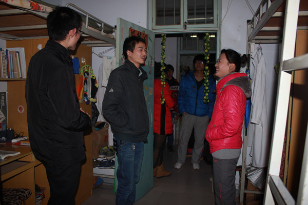 团委书记、2011级辅导员王路娟前往河南大学金明校区北苑28、29号宿舍楼慰问该年级同学。2011级年级长陈帅等学生干部随行。