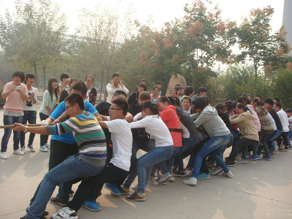整个比赛过程中,同学们保持高涨热情。在跳大绳环节上,同学们排队有序,配合默契,随着绳子的起伏顺利完成一个个跳跃动作,引得观众连连叫好。王书记深入比赛现场,亲临指导,主动担任拔河比赛的裁判,专业的建议和裁决令同学们敬佩。本次比赛的亮点和高潮是以寝室为单位的”四人五足“游戏,该项目报名人数多,共分三组,男女分别计分决出胜负。来自化工二班的同学在半途意外摔倒,在周围同学的帮助下站起来后,坚持走完全程。这一场面感动了在场所有同学,团结一致的精神深深刻入大家的心中。