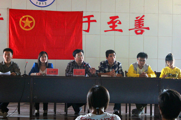 和学生间的桥梁,要想构架好这桥梁,大家应明确责任,严于律己、提高修养、树立正确的人生观,价值观和世界观,起到模范作用。她鼓励在场学子无私奉献,锻炼能力,扎实工作,继往开来。