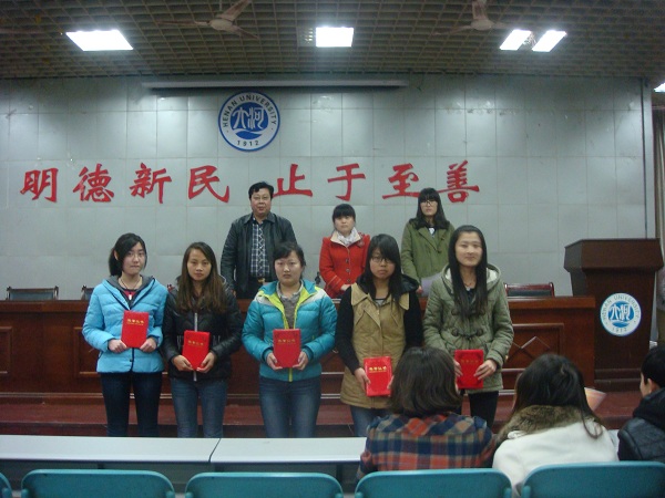 随后,马洁分别宣读了2014年暑假社会实践、秋季运动会、男排女篮获奖人员及学生会评优名单。王志乾、马洁为获奖人员颁奖并合影留念。