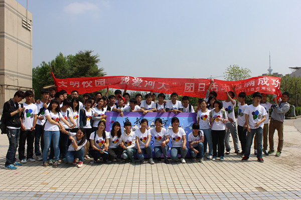 2012级应用化学专业的同学们在三号教学楼义务打扫教室,开展了以“文明校园,爱我河大”为主题的团日活动。