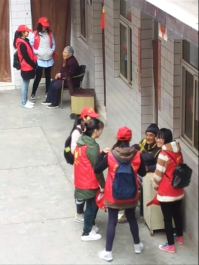 青协成员在我校北门集合,在部长的带领下以整齐的队伍来到红力敬老院。到达之后,小青们纷纷行动起来。有的帮忙打扫室内外卫生;有的三两结伴去房间看望老人们,陪老人聊天,唱戏哄老人开心,对有耳疾的老人他们耐心地倾听、与其交流;有的前去搀扶腿脚不方便的老人,并陪他们锻炼。大家都热情洋溢,整个养老院不时传来老人发自内心的欢笑声。最后,大家在敬老院内部空旷的地方合照留影,为这短暂但却温暖的时光做见证,然后和爷爷奶奶们不舍地挥手告别。