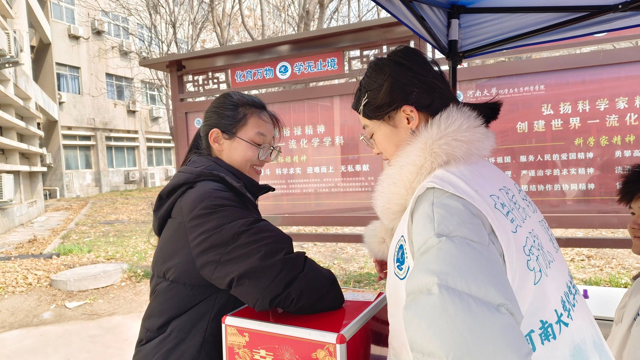 活动现场,线下集章抽奖活动如火如荼,吸引了众多同学参与。精心设计的趣味关卡——“巾帼风华”知识问答与“锦言妙语”表情包猜成语,巧妙地将知识性与趣味性融为一体,不仅考验了同学们的知识储备,更激发了大家的参与热情。活动现场,同学们积极热情,营造出热烈而温馨的氛围。成功集齐印章的同学们,带着满满的成就感参与抽奖环节,丰厚的奖品让每一位参与者都收获了满满的惊喜与快乐,进一步提升了活动的吸引力和参与感。