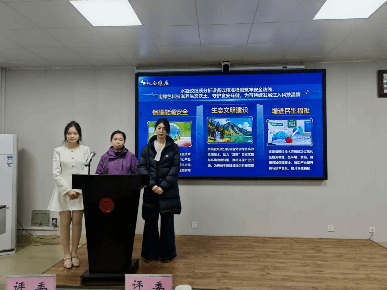 本次院赛按竞赛组别依次开展路演答辩,各赛道参赛团队紧扣组别主题,带来了各具特色的创业项目。在社会治理和公共服务赛道,智弈社、清风团队先后登场,围绕政务服务、公共卫生、消费生活等领域的社会治理痛点,展现了兼具实用性与创新性的解决方案;生态文明建设和绿色低碳发展赛道上,碳骊得珠、环宇智纳队、绿禾先锋队等5支团队,聚焦环境治理、清洁能源应用、可持续资源开发等方向,将绿色发展理念融入项目设计,为推动低碳发展贡献青年思路;最后是科技创新和未来产业赛道,愈感肤——可注射智能传感敷料研发组、智盾科技、风净无忧等16支团队依次上台路演,覆盖智能制造、人工智能、大数据、新能源等多个前沿领域,从智能传感敷料研发到氢能、锂电产业创新,从光催化技术应用到防腐技术突破,紧扣创新驱动发展战略的项目,彰显了河大学子在科技研发与产业转化方面的探索与尝试。