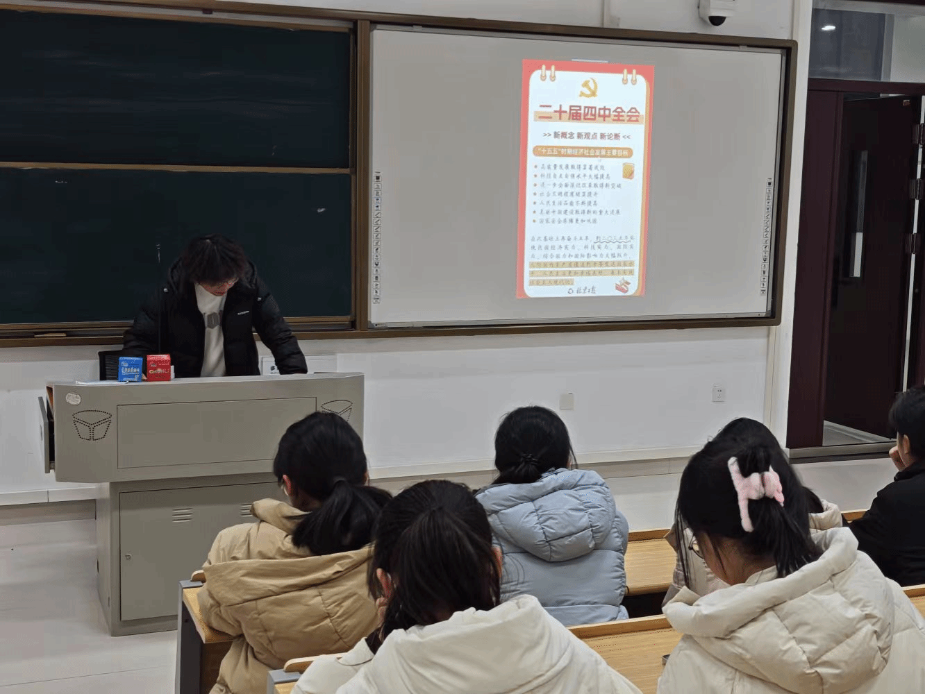 刘广亮围绕党的二十届四中全会蓝图,向同学们讲解“十五五”规划的核心目标与青年一代的使命担当。他重点解读全会提出的“增强科技创新引领作用”“建设美丽中国”等与化学学科紧密相关的内容,鼓励同学们将专业理想融入国家发展大局,在“卡脖子”技术攻关、绿色低碳转型等时代课题中找准青春坐标,勇担时代使命。