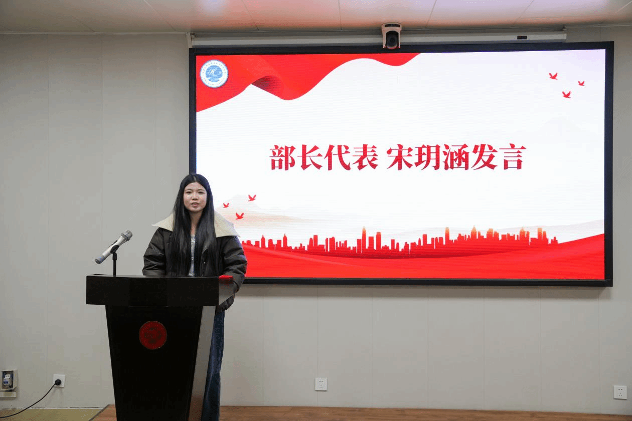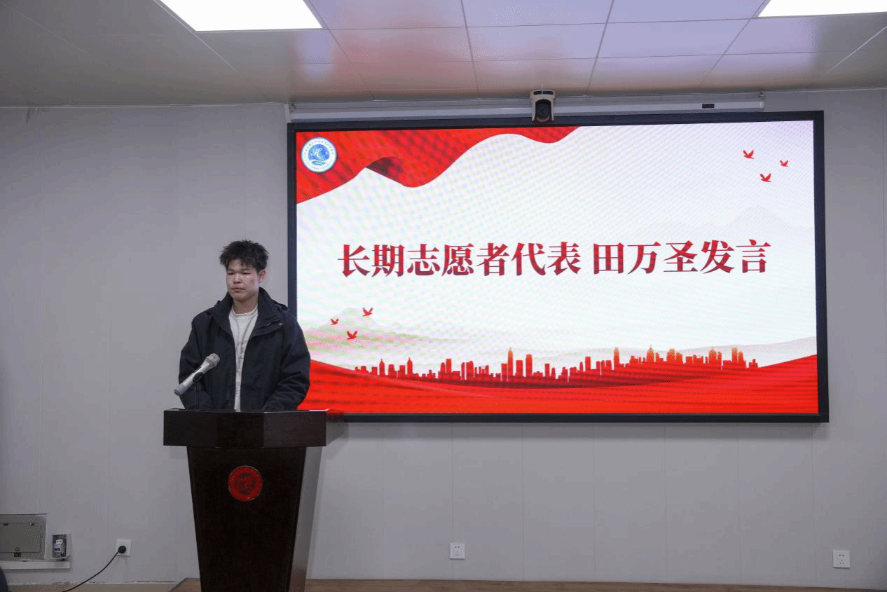 随后,部长代表宋玥涵结合自身工作经验发言,分享了在学生工作中的成长与感悟。长期志愿者代表田万圣以自身经历为切入点,讲述了在学生会的工作实践里,通过参与各类志愿活动与学生服务工作,实现了个人沟通能力、组织能力的全方位成长,也深刻体会到了服务他人、奉献集体的价值。