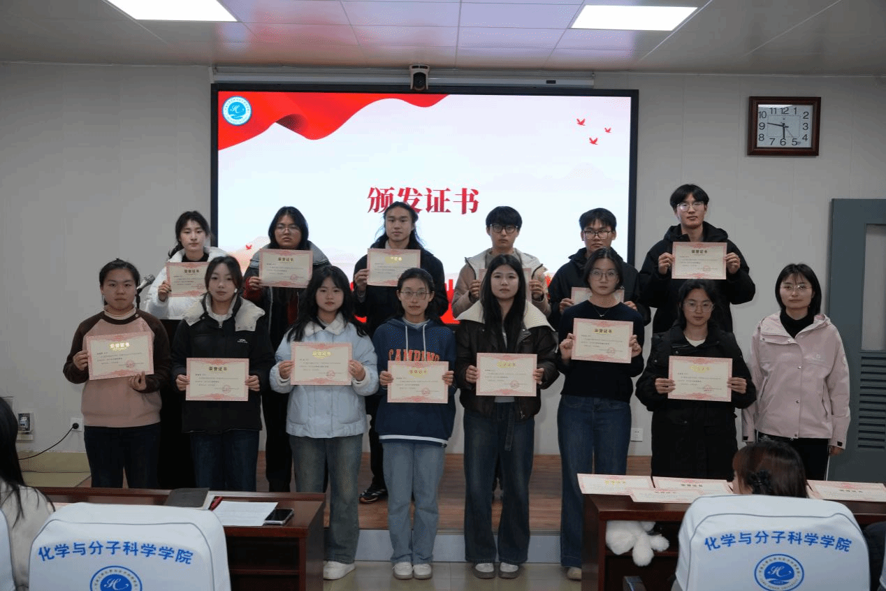 在表彰环节中,田梦为优秀部长及志愿者颁发荣誉证书,并与获奖代表合影留念,现场洋溢着振奋的氛围。这份荣誉既是对学子们过往付出的肯定,更是对其未来履职的激励。