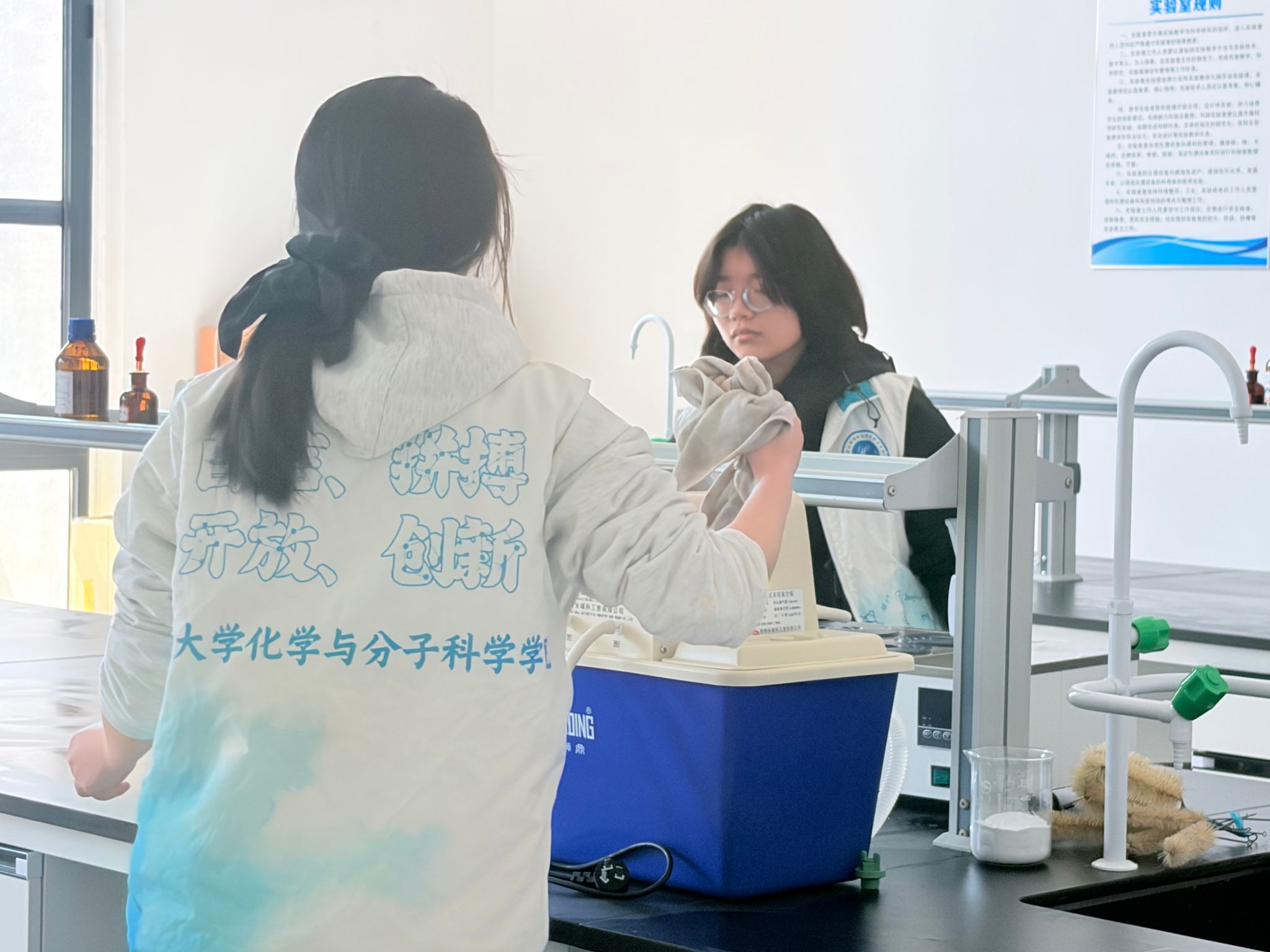 “学雷锋志愿服务月”号召,3月20日中午,2025级化学第一团支部组织15名团员代表走进科创西楼一楼化学实验室开展志愿打扫活动。同学们分工协作,认真细致地清理实验台面、整理器材、清扫死角,用实际行动美化校园环境。此次活动不仅践行了奉献精神,更展现了青年团员的责任与担当,让雷锋精神在实践中焕发新光彩。