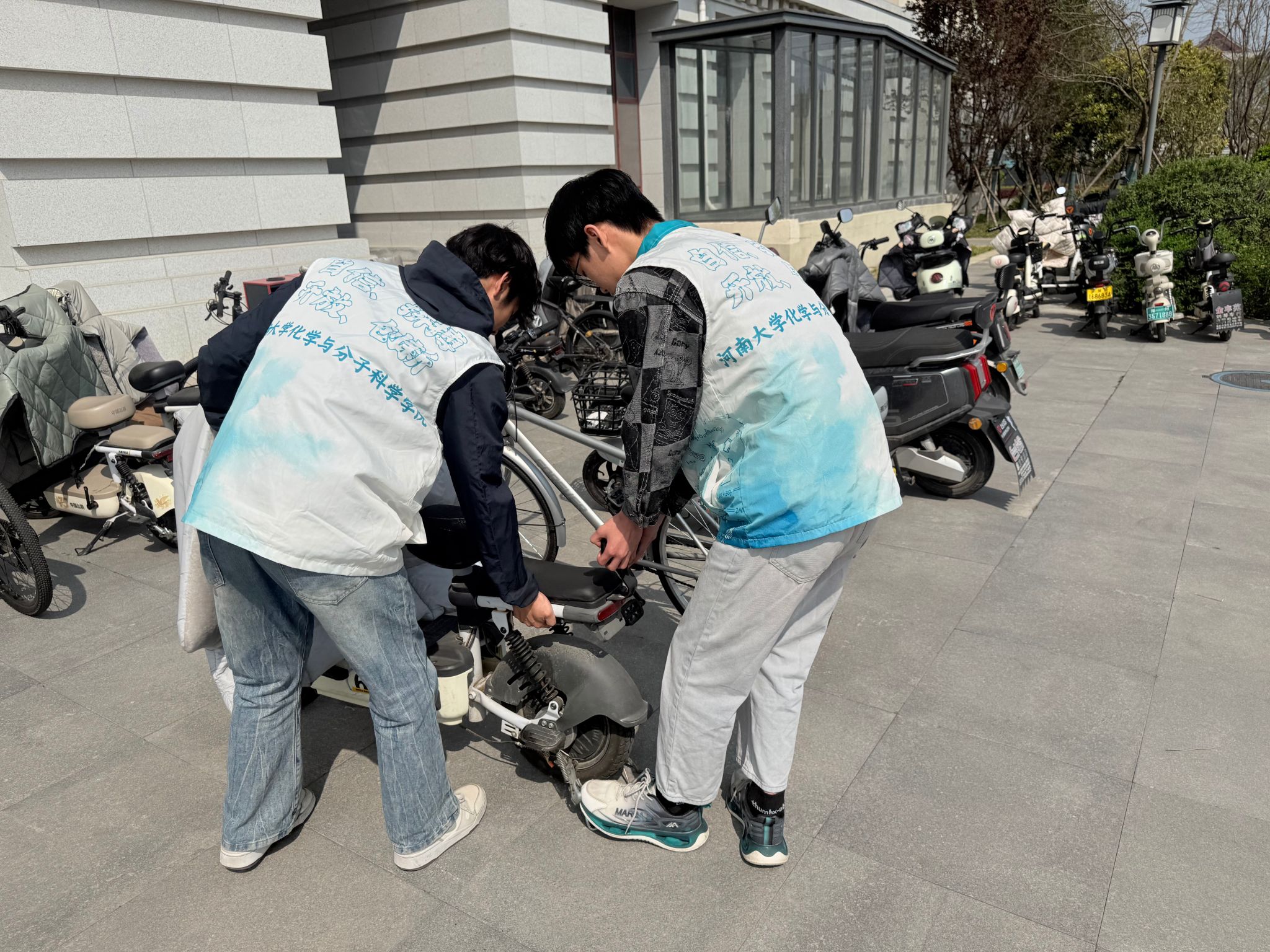 门口杂乱摆放的电动车和自行车归置整齐。此次活动不仅美化了校园环境,更增强了同学们的责任意识与集体凝聚力,充分展现了材料化学班学子服务校园、乐于奉献的青春风采。